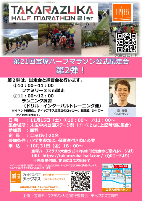 第21回宝塚ハーフマラソン大会 公式試走会 第2弾を開催いたします。